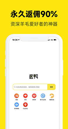 返鸭APP,不搞多级分销。永久返佣90%,真诚且厚道。克制不打扰,绝不推送广告。让你安心用一辈子。